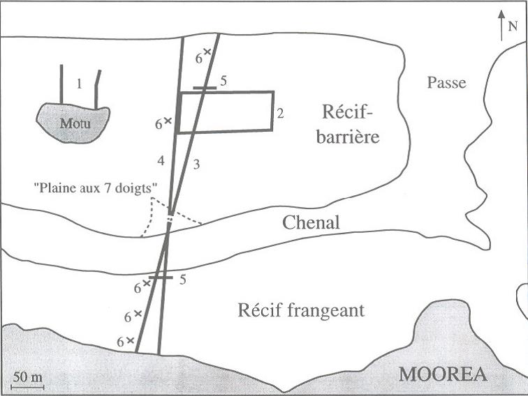 The research program Agencement Temporel des Populations et des Peuplements (ATPP, Temporal Layout of Populations and Communities) started in 1990 on the barrier reef and in 1991 on the outer slope of Tiahura in the North coast of Moorea.