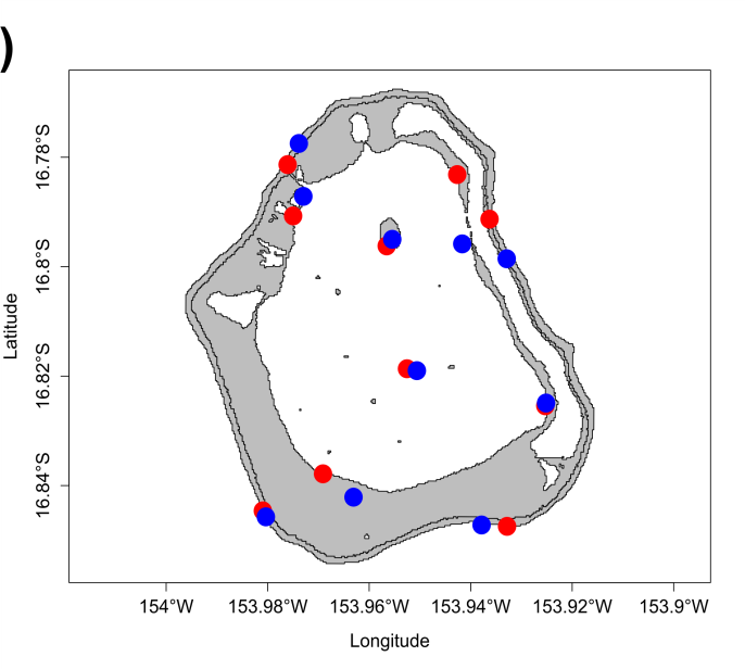 | ML3 | -16,842117 | -153,96308 | 2 | 5 | 12 | 2014 | Visual census | Lagoon reef | Built reef | |